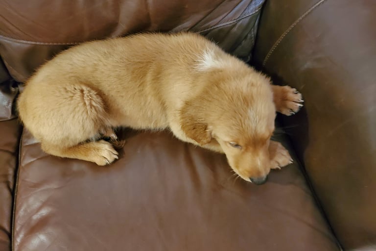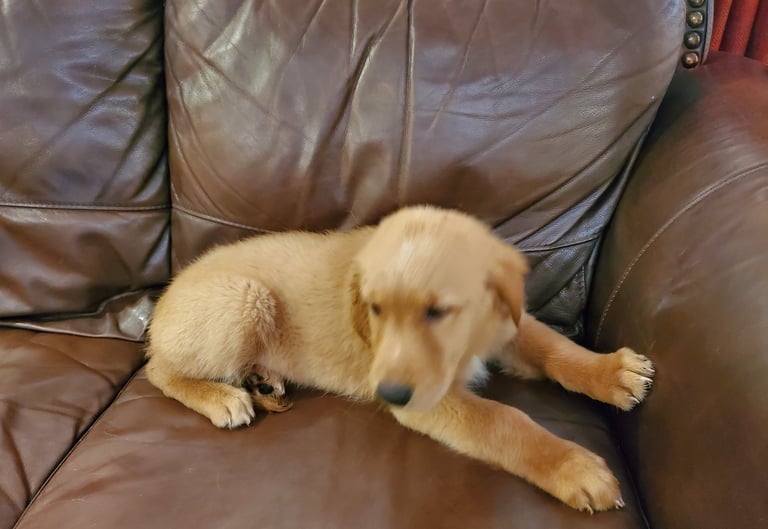 We have 1 male left. He is golden in color. He is 12 weeks old. He has had his first shots and is up to date on worming. He is a pure bred Goden Retriever. We have dropped the rehoming fee to $500. Feel free to call or text if you have any questions or would like to set an appointment to see him. We are in Plano, TX. Bryan Moore 469-583-7243